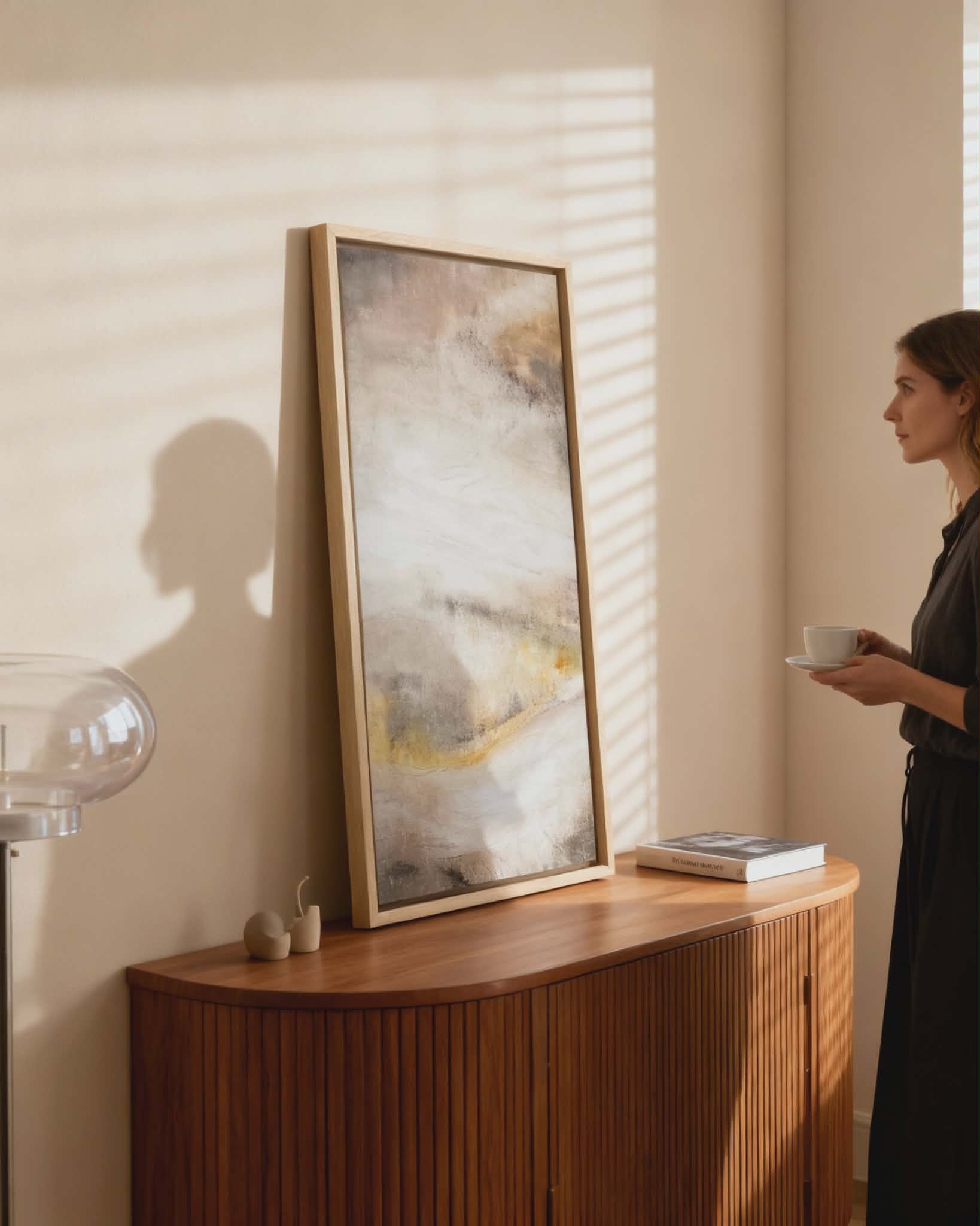 Obraz stworzony z myślą o nowoczesnych wnętrzach, gdzie ma pełnić rolę eleganckiej i uspokajającej dekoracji ściennej. Idealny do harmonizowania przestrzeni, wprowadzi spokój, neutralność i otwartość na zmiany.